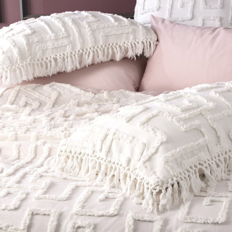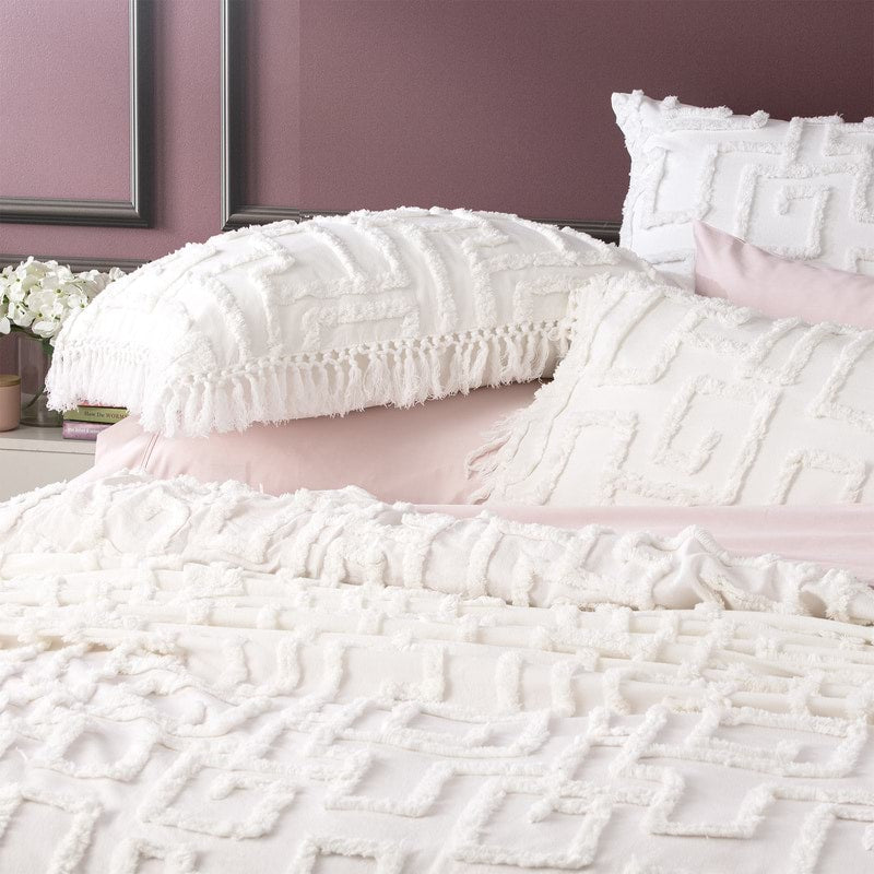 طقم غطاء سرير معنقّد مغسول عتيق مصنوع من القطن بنسبة 100% باللون الأبيض