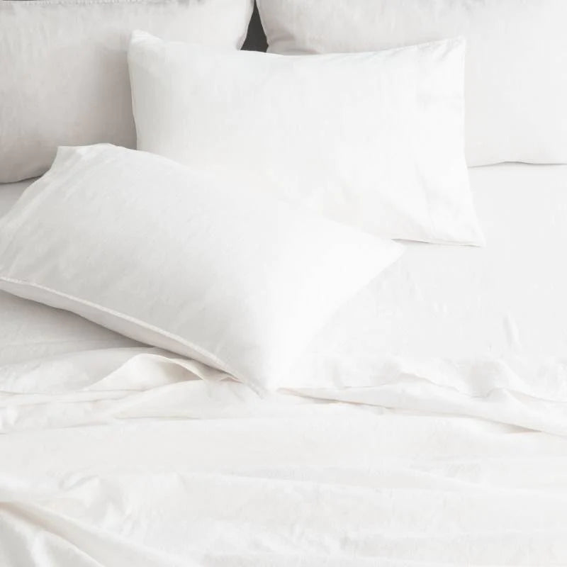 طقم ملاءات من الكتان الفرنسي المغسول بحجر كافالو باللون الأبيض