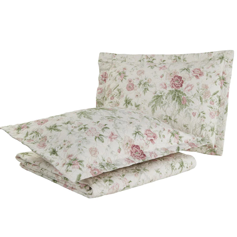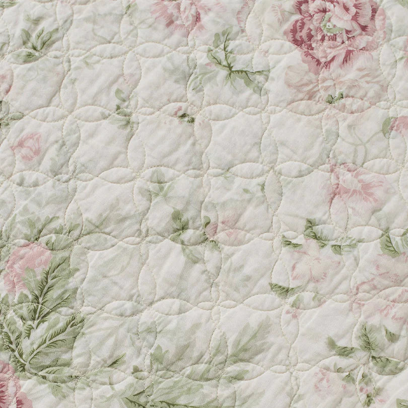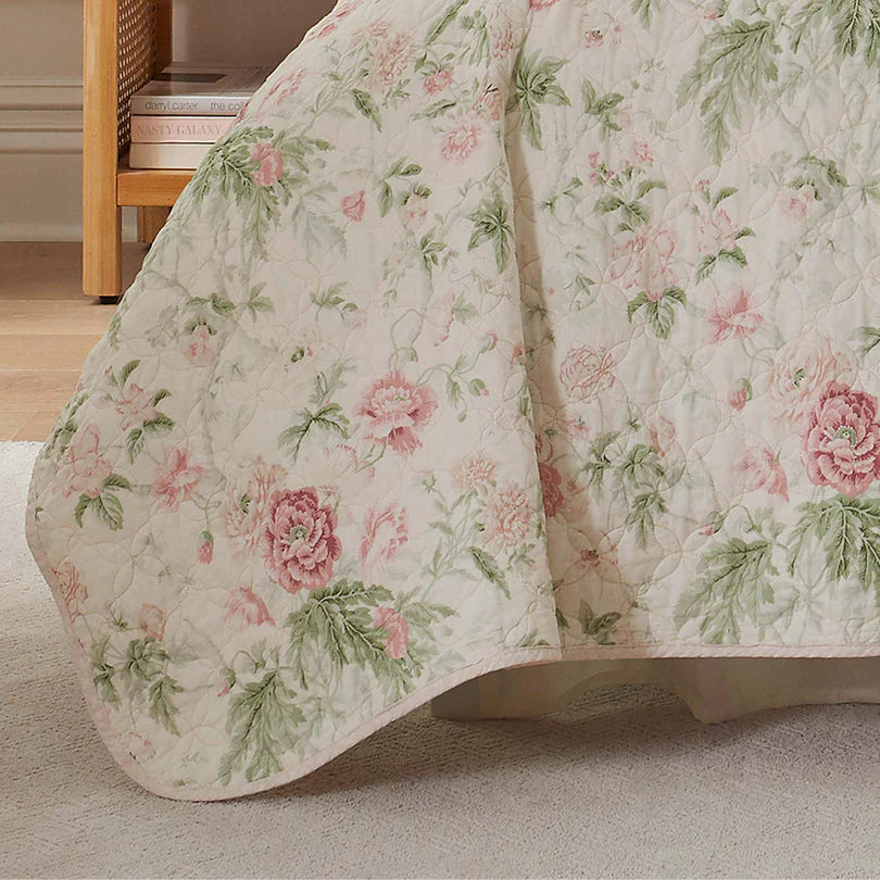مجموعة غطاء الزهور Breezy Floral Coverlet باللونين الوردي والأخضر من Laura Ashley هي تصميم زهور رومانسي للحديقة. يخلق Breezy Floral مزاجًا عتيقًا في لوحة ناعمة من اللون الوردي الوردي والأخضر مع لمسات صفراء باهتة على خلفية بيضاء كريمية. يتميز هذا الطقم المصنوع من القطن بالكامل بطباعة عكسية متباينة، وقد تم غسله مسبقًا لمزيد من النعومة والراحة.