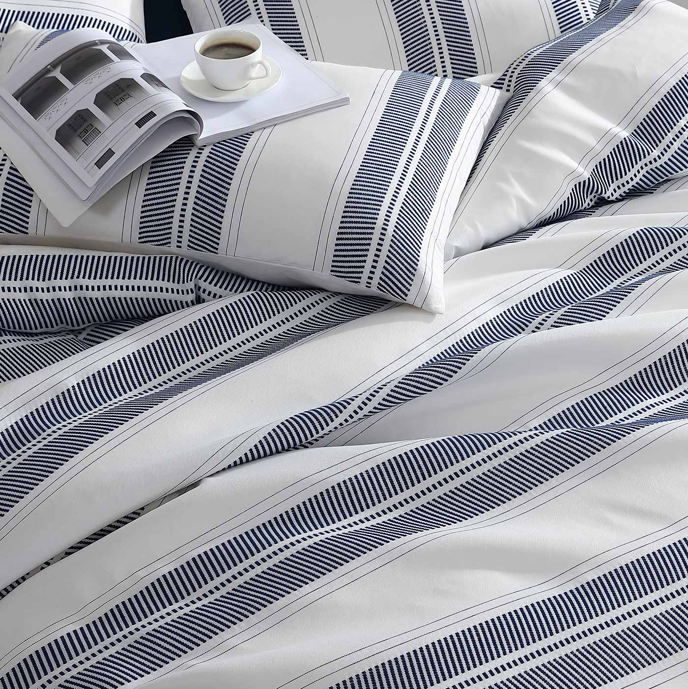 توفر مجموعة غطاء لحاف Cadet Navy مظهرًا ساحليًا مريحًا بلون بحري خالد. يتميز بخطوط كبيرة مزخرفة لإحساس صيفي لا لبس فيه.