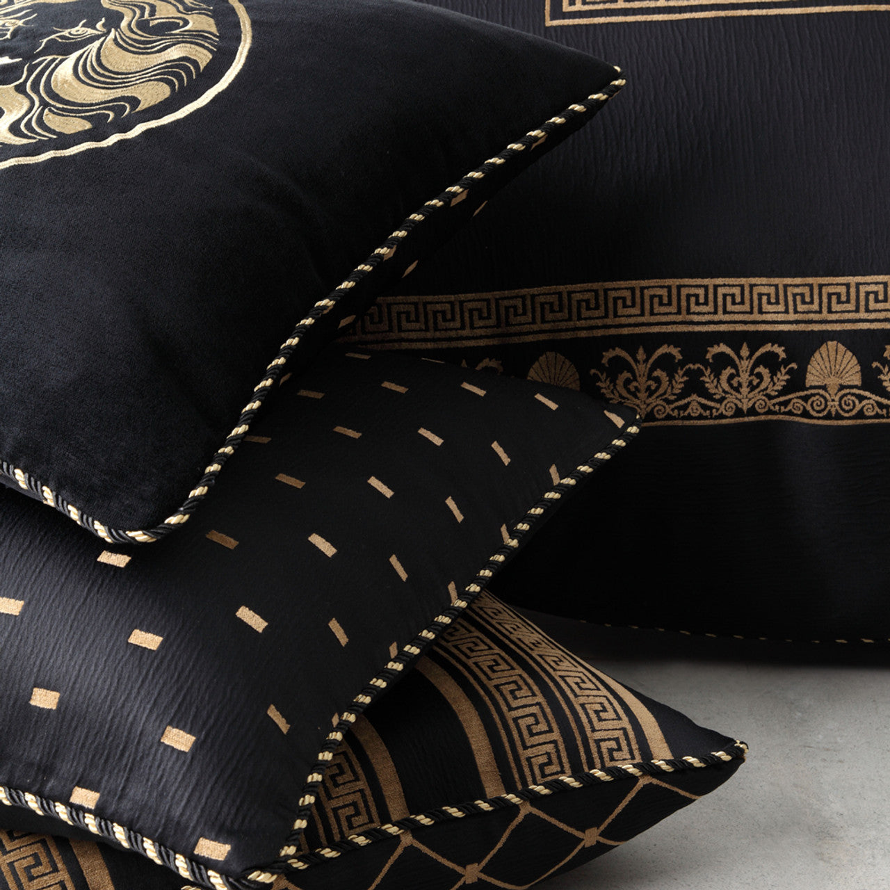 Elevate your bedroom with the captivating style of the Massimo Black Bed Quilt Cover Set.