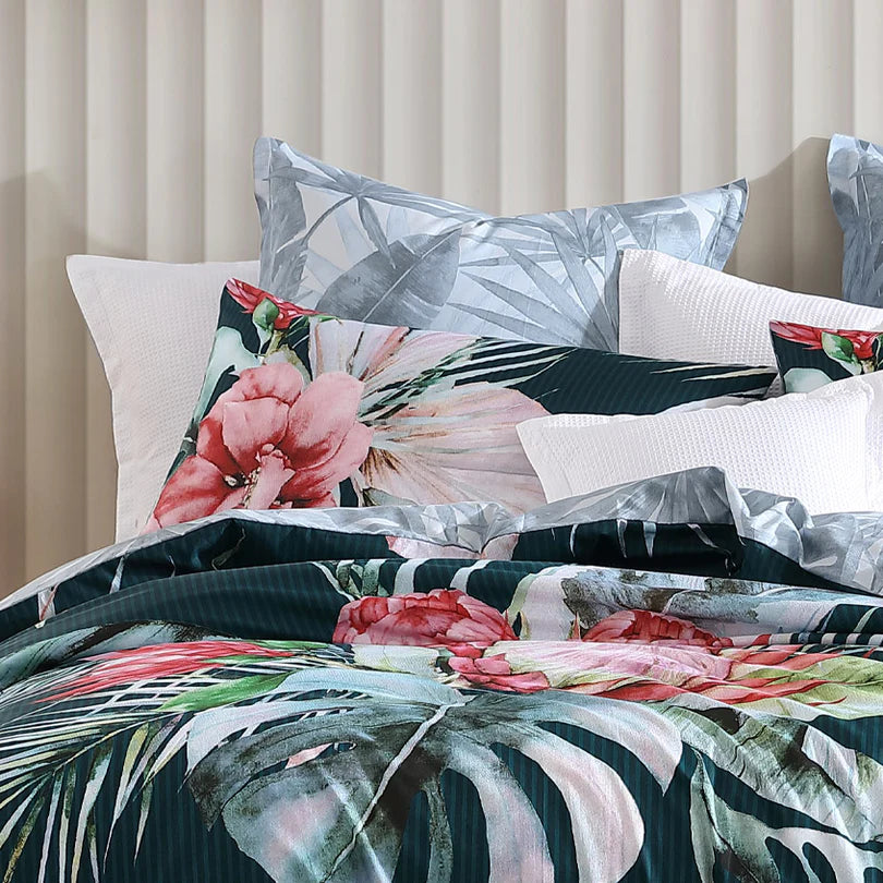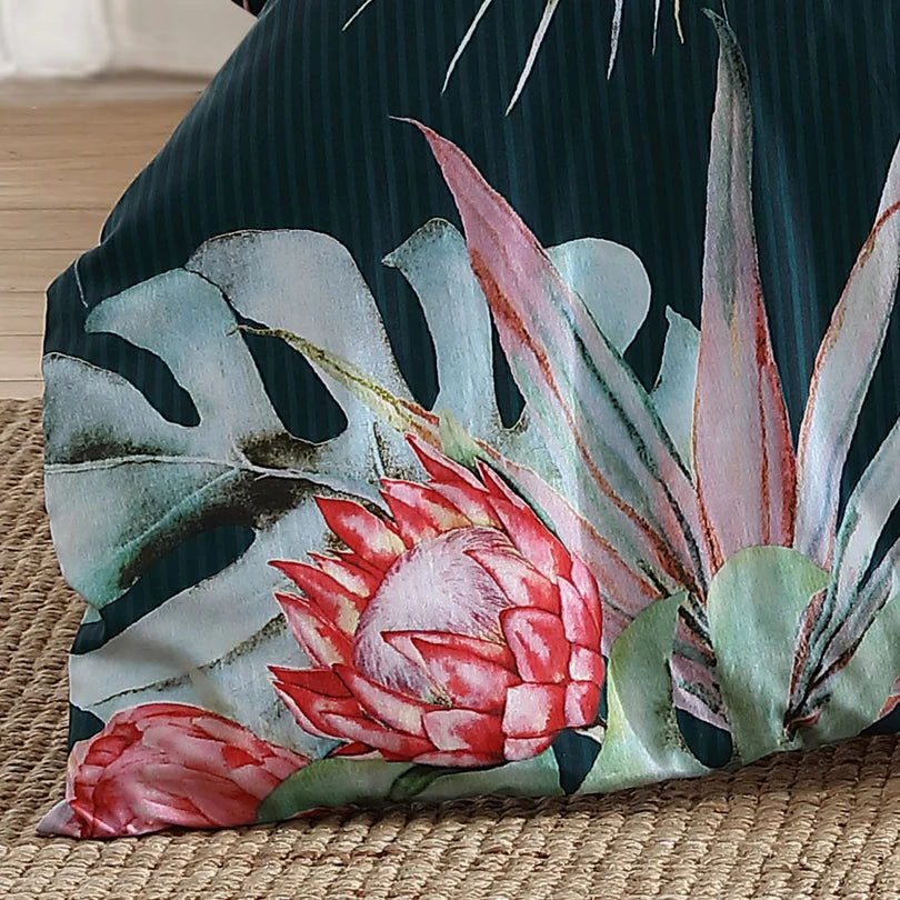 استمتع بالجمال الساحر لمجموعة غطاء لحاف البتراء باللون الأزرق المخضر من لوجان وماسون حيث أنها تعرض زهور بروتيا بألوان مائية كبيرة الحجم تمتزج بسلاسة مع أوراق النخيل الاستوائية. يضيف طقم الفراش الرائع هذا لمسة غريبة إلى ليالي الشتاء الخاصة بك، ويغلف غرفة نومك بأجواء آسرة. تخلق الظلال المذهلة من اللون الأزرق المخضر والوردي الزاهي إضافة لافتة للنظر إلى ديكور غرفة نومك، مما يضيف عنصرًا حيويًا وحيويًا إلى مساحتك. انغمس في سحر مجموعة Petra Teal، حيث يتشابك جمال الطبيعة والأناقة الفنية لخلق تجربة نوم رائعة حقًا.