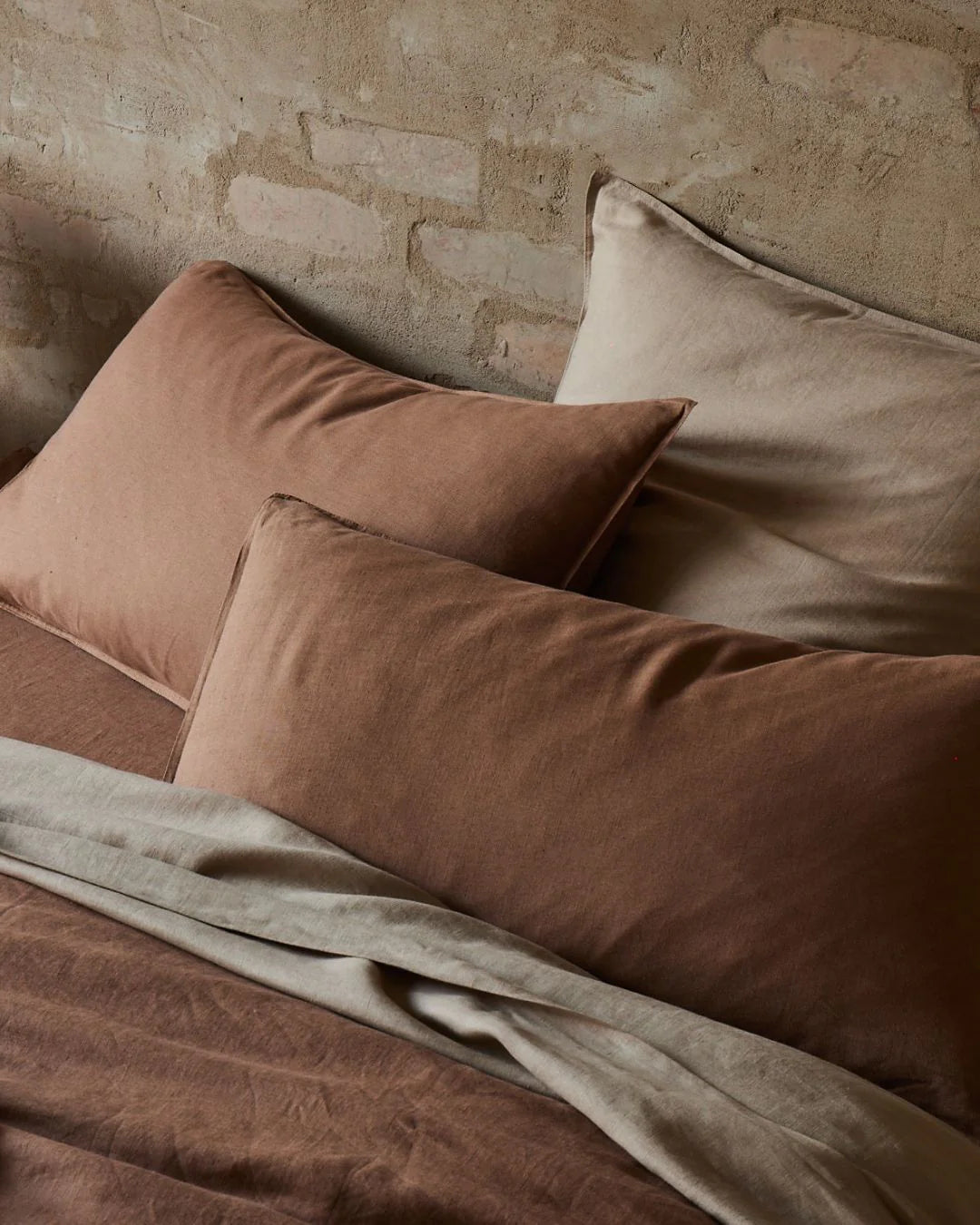 Crafted from the highest quality French Flax Linen, each product from the Ravello range is prewashed and aero finished for a unique and luxuriously soft, relaxed feel, making it a dream to rest and relax in.  The Biscuit colourway is a beautiful, earthy clay that offers warmth and is bound to softly brighten your bedroom while bringing a warm, cosy feel.