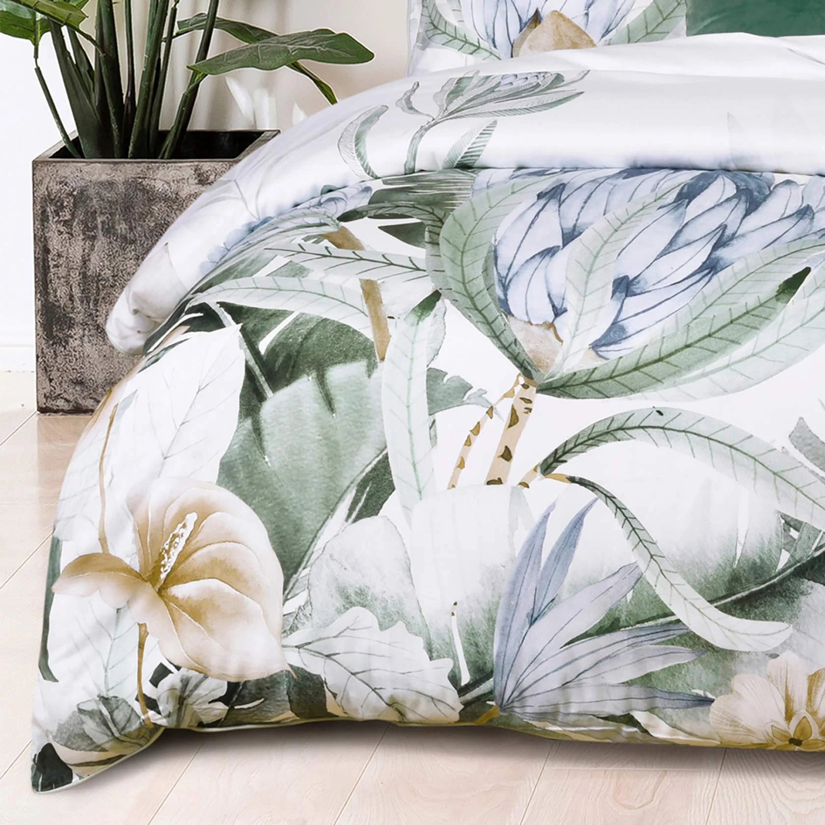 Make a change this spring and bring some freshness with Evergreen. Gorgeous florals in cool tones are perfectly placed over this quilt cover.